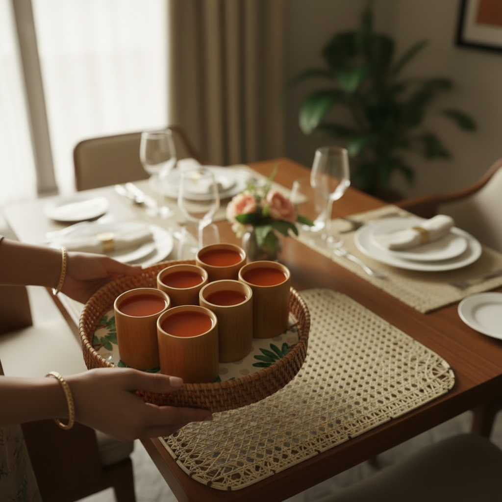 Ideal for serving beverages to guests or elevating everyday moments, this set adds warmth and charm to any table setting. Lightweight, durable, and eco-friendly, it is perfect for those who appreciate mindful, stylish living.